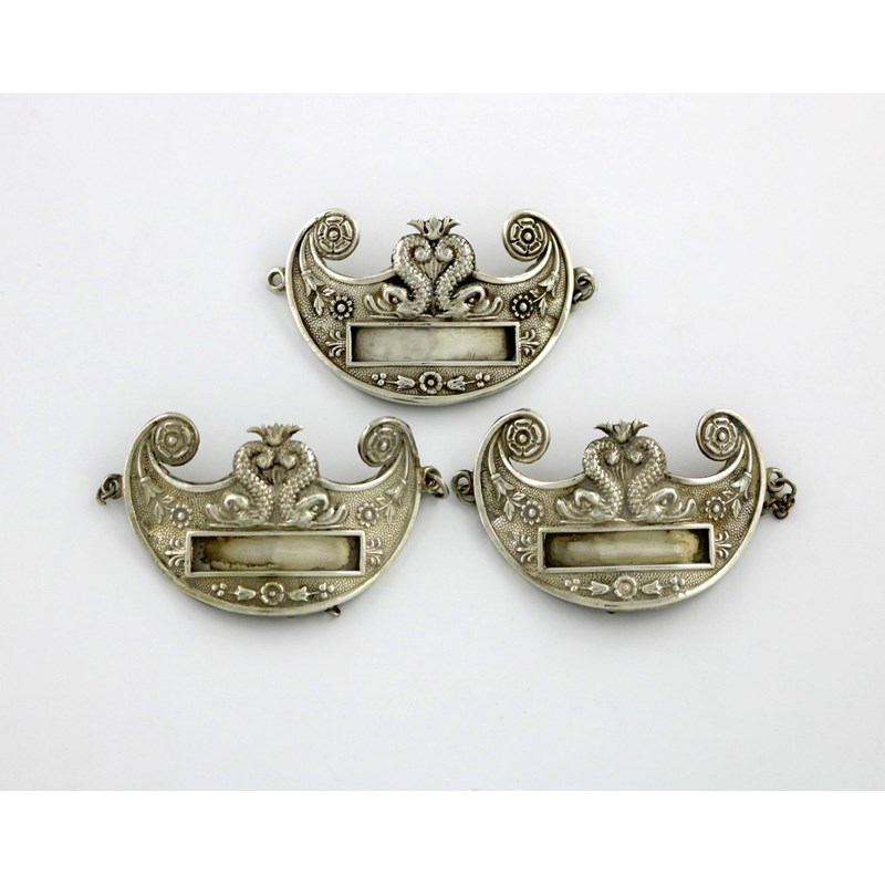 A set of three 19th century silver 'slot-in' wine labels