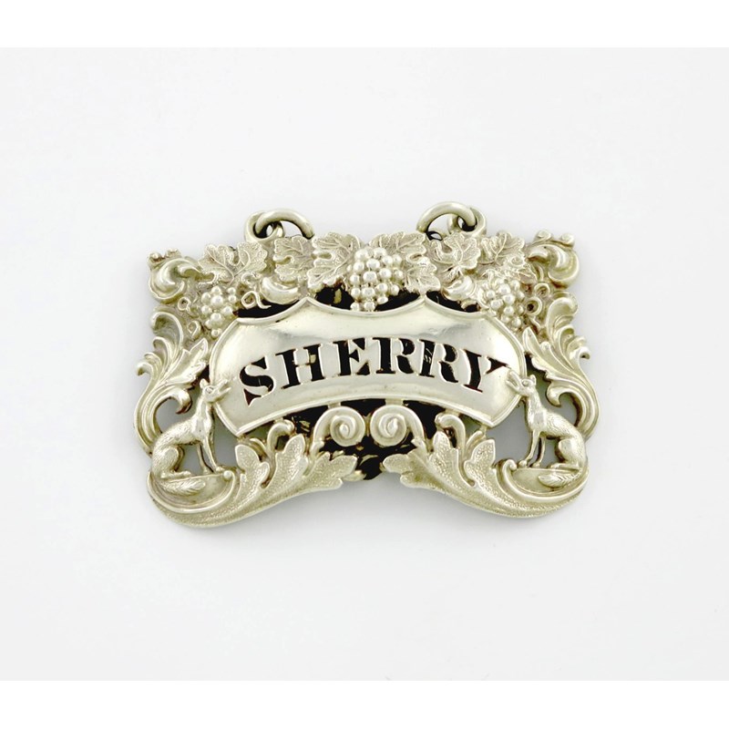shaped rectangular form, pierced with two foxes and trailing grapevines, pierced 'SHERRY', length 5.8cm, approx. weight 0.7oz.