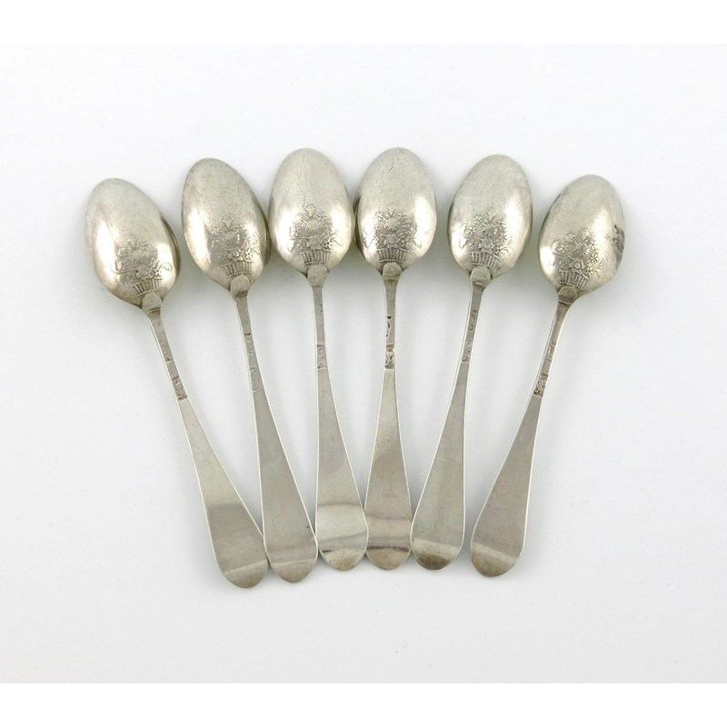 A set of six George III silver 'picture-back' Hanoverian pattern teaspoons