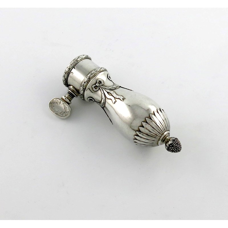 baluster handle, ribbon-tied and fluted decoration with a cone finial, length 12.7cm, approx. weight 9oz.