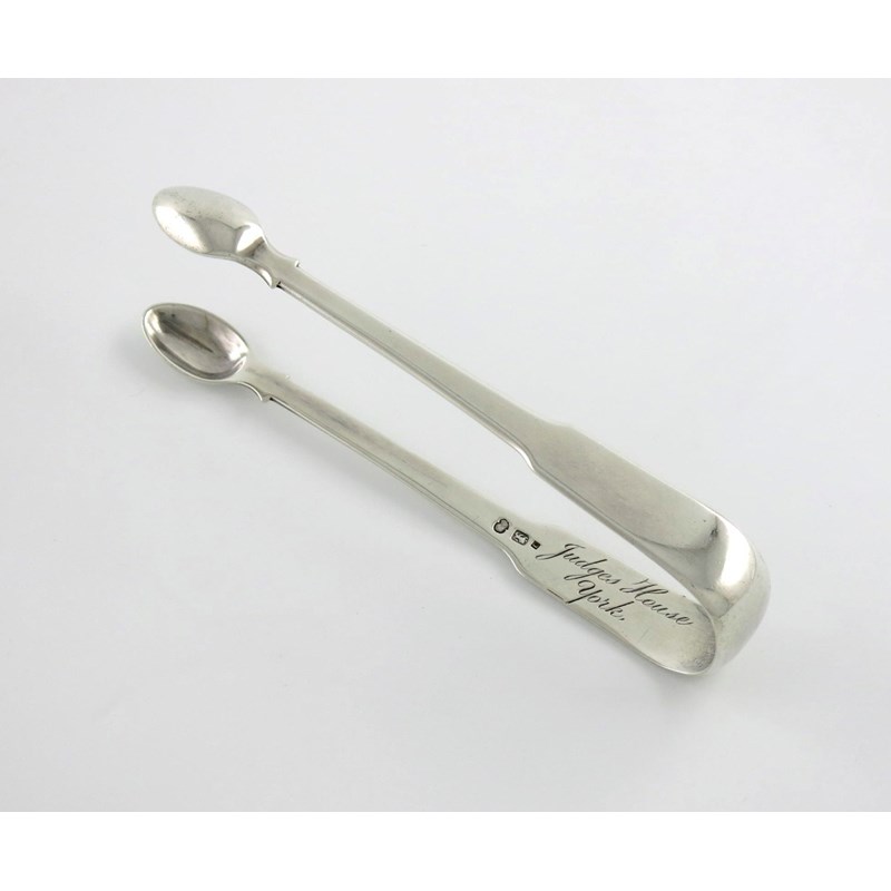 A pair of George III provincial silver Fiddle pattern sugar tongs,