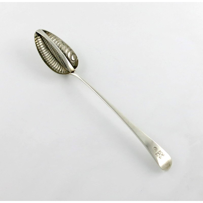 the terminal with a crest and initial, the bowl with a pierced strainer, length 30cm, approx. weight 3.8oz.