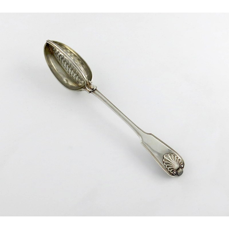A 19th century silver Fiddle, Thread and Shell pattern straining spoon,