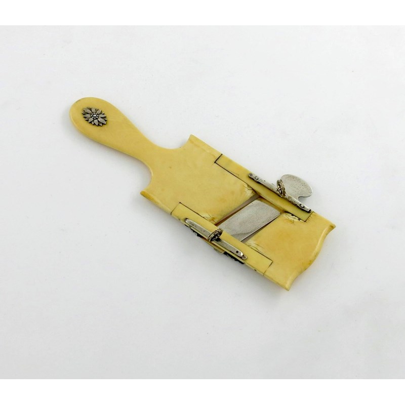 λA George III silver-mounted ivory cucumber slicer
