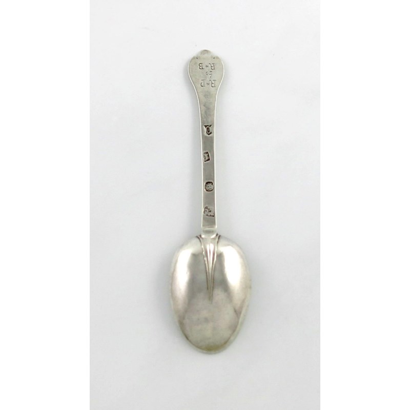 the oval bowl with a plain rat-tail, the reverse of the terminal scratch initialled 'R.P to R.B', length 18.4cm, approx. weight 1.4oz.
