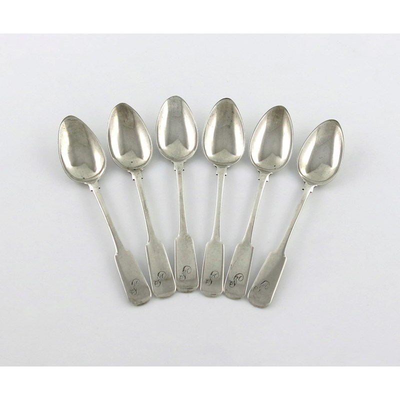 A set of six early 19th century Scottish provincial silver Fiddle pattern teaspoons