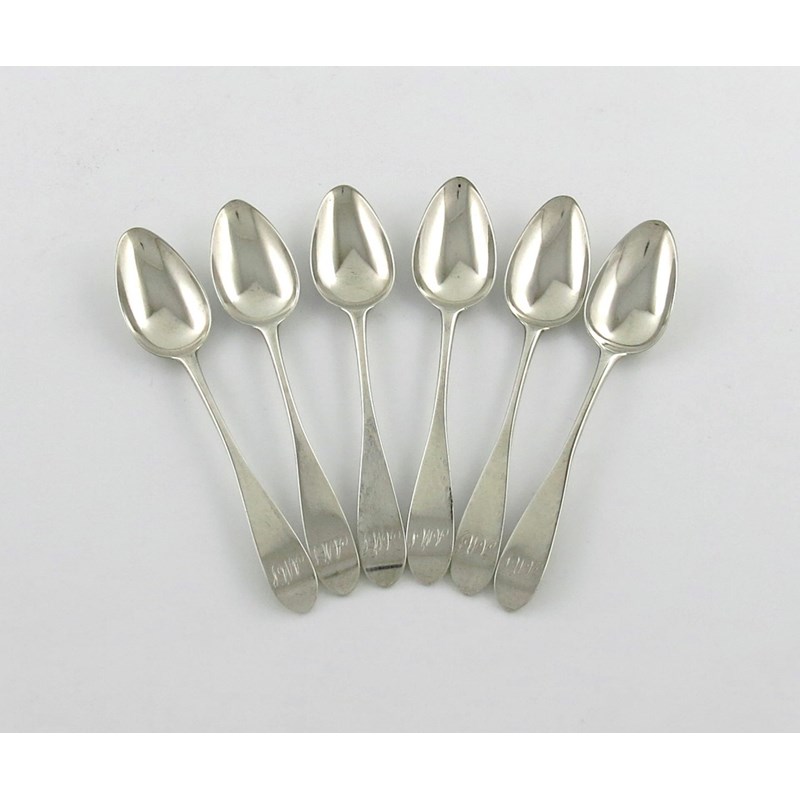 A set of six George III Scottish provincial silver Celtic-point pattern teaspoons