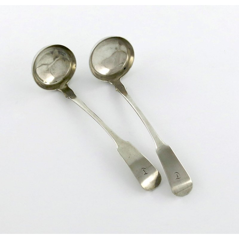 A pair of early 19th century Scottish provincial silver Fiddle toddy ladles
