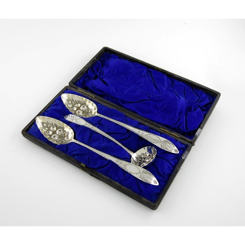 the bowls with later gilded berry decoration, in a fitted case, approx. weight 5.8oz.