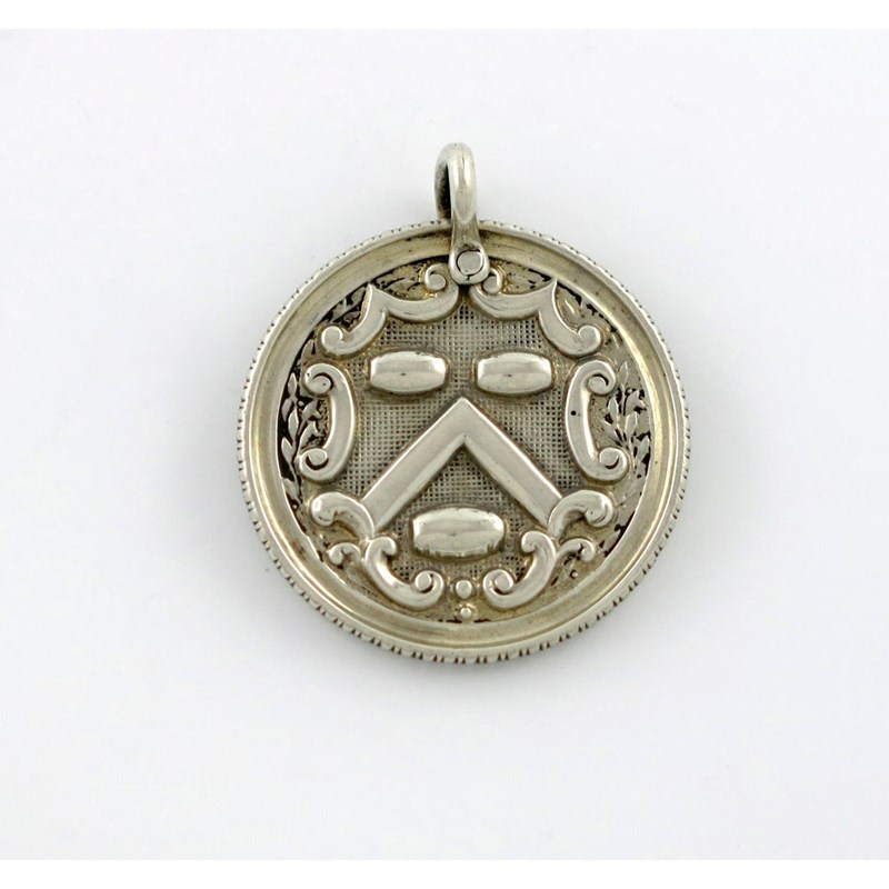circular form, with the Company's arms, gadroon border, plain ring attachment, the reverse inscribed 'Christopher Man', diameter 4cm, approx. weight 1oz.