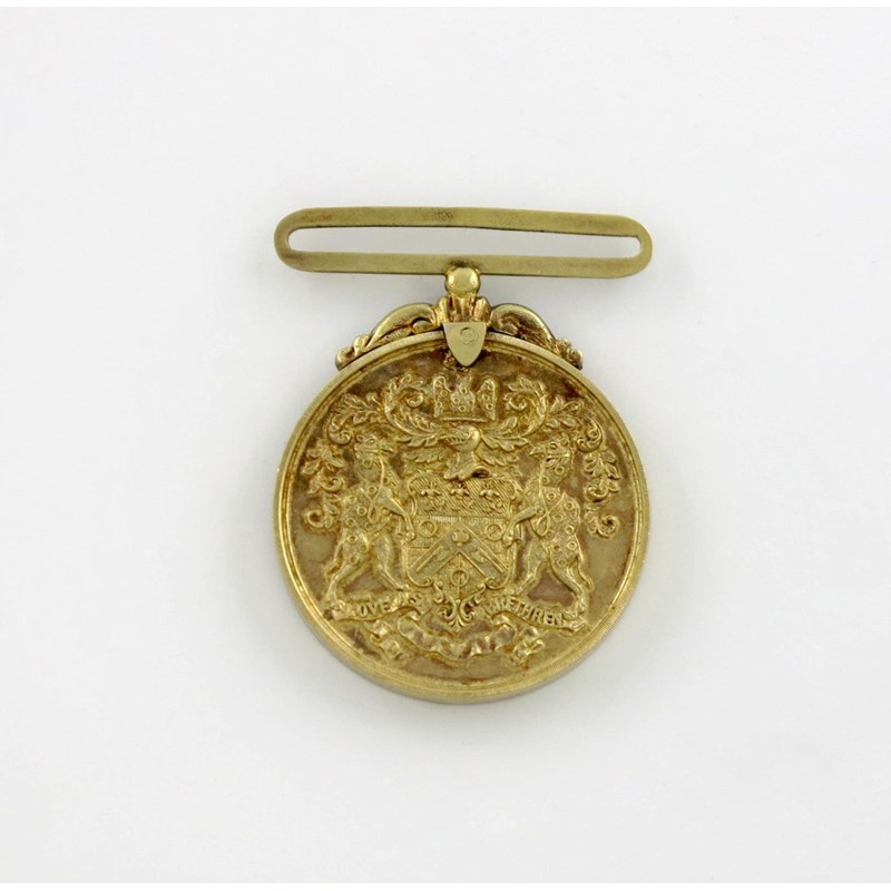 circular form, with the Company's arms, the reverse inscribed 'George Thomas Rait, Livery 1878, Assistant 1910, Master 1911-12', with a ribbon holder, diameter 3.8cm, approx. weight 1.2oz.