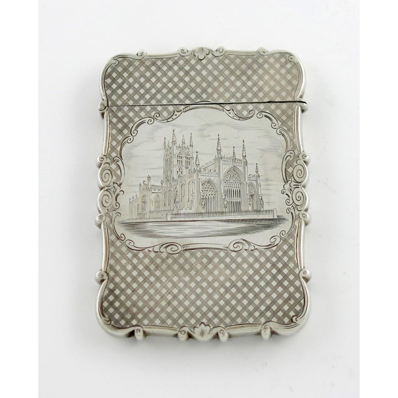 A Victorian silver engraved 'castle-top' card case, Holy Trinity Church, Hull,