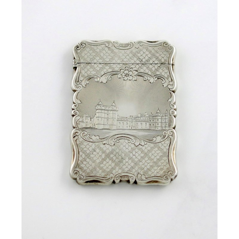 A Victorian silver engraved 'castle-top' card case, The Palace of Holyroodhouse, Edinburgh,