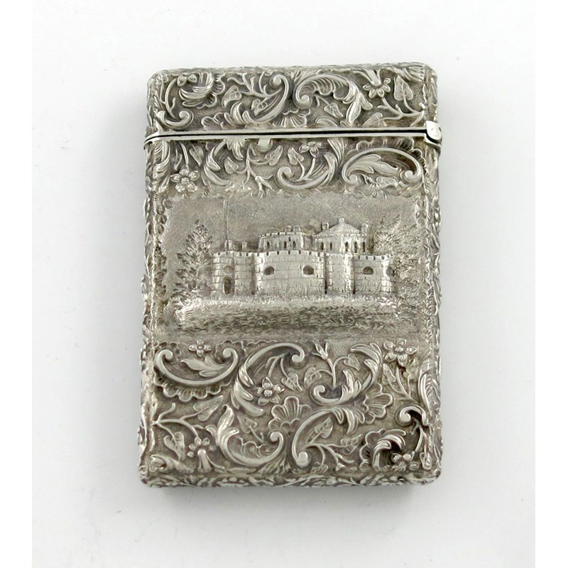 A Victorian silver 'castle-top' card case, Walmer Castle, Kent, and Windsor Castle,