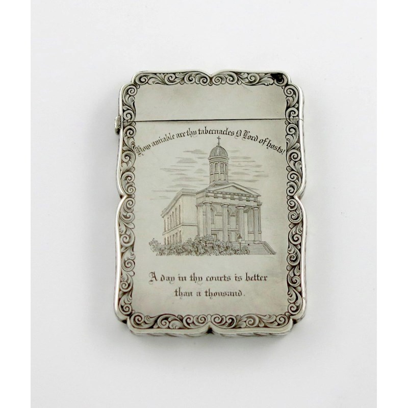 A Victorian silver engraved 'castle-top' card case, St. George's Church, Brandon Hill, Bristol,