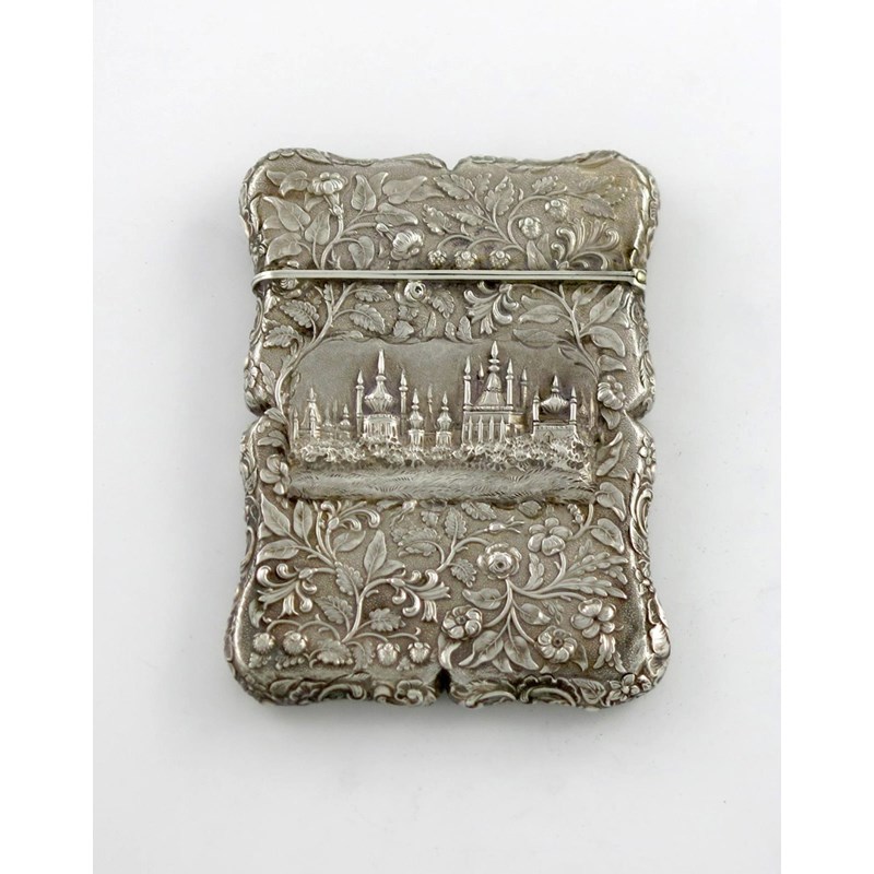 A Victorian silver 'castle-top' card case, Brighton Chain Pier and Brighton Pavilion,