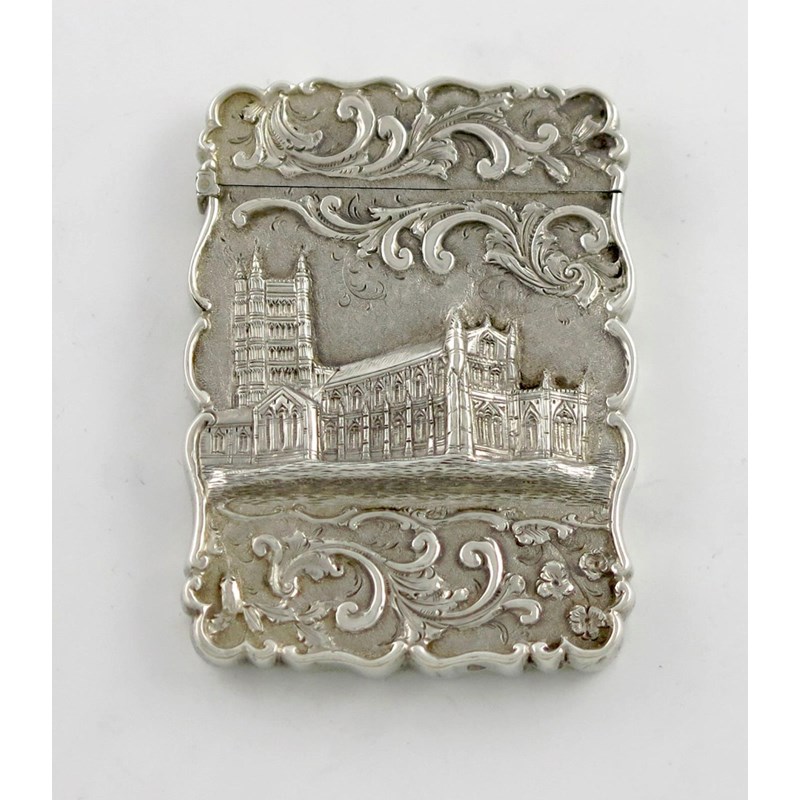 A Victorian silver 'castle-top' card case, possibly Exeter Cathedral,