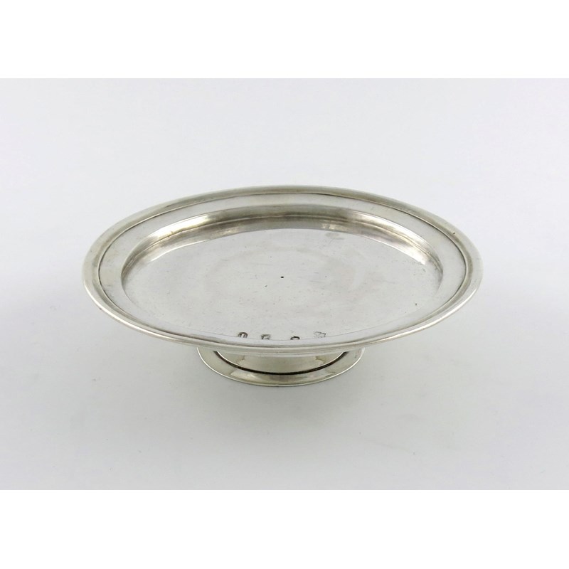 circular form, on a raised circular base, the underside of the base engraved with an armorial, diameter 16.8cm, approx. weight 10oz.