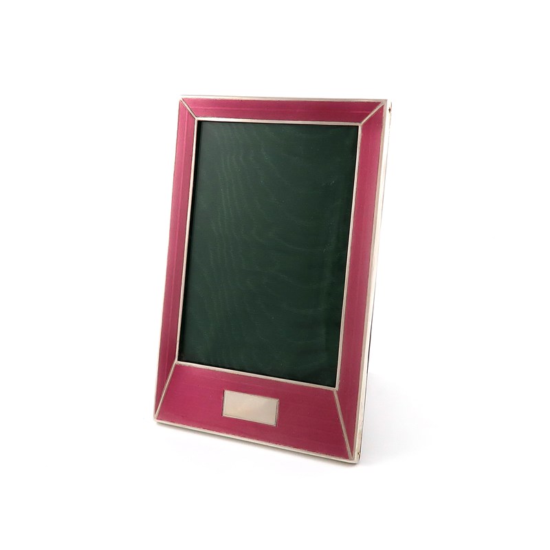 A silver and enamel photograph frame