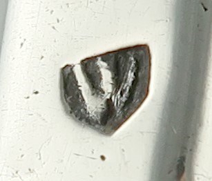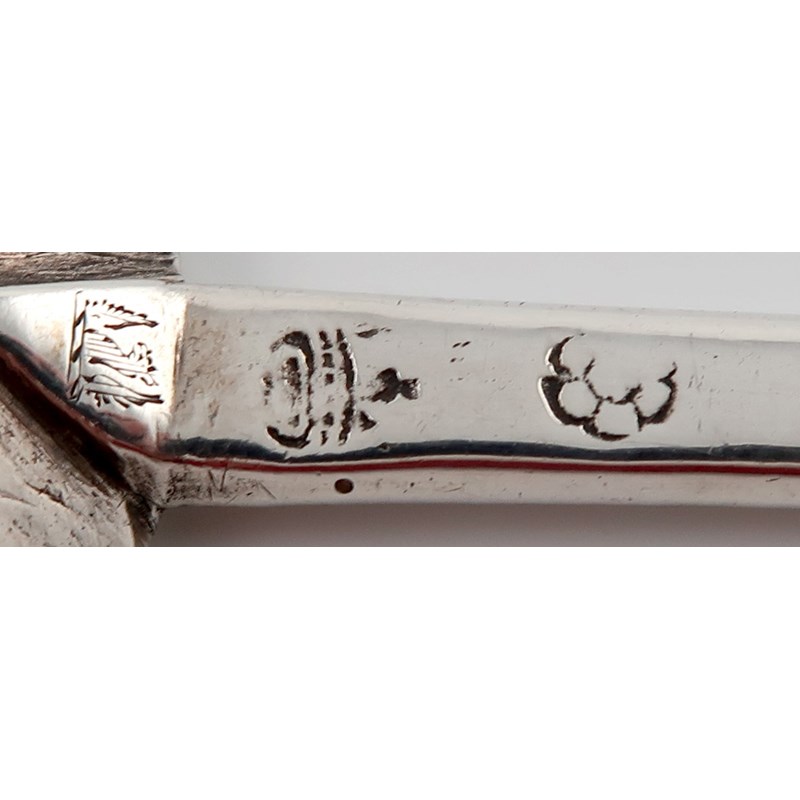fig-shaped bowl, tapering faceted stem, the base of the handle with a later crest, length 18.5cm, approx. weight 1.8oz.