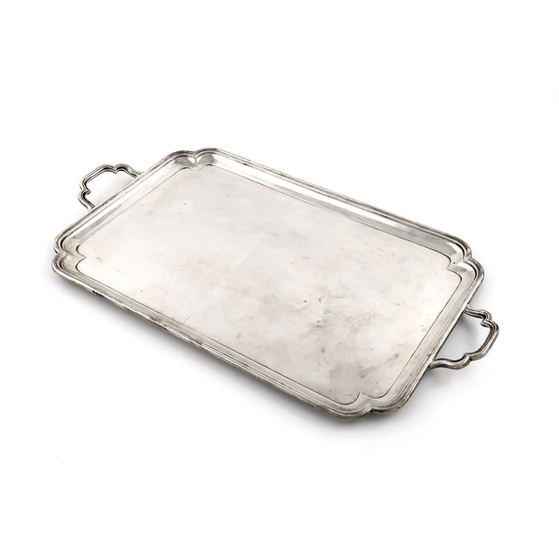 rectangular form, incurved corners, length handle to handle 46.7cm, approx. weight 43.5oz.