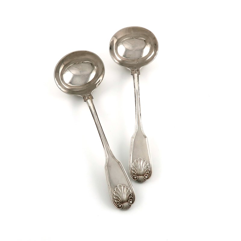 A pair of Victorian silver Fiddle, Thread and Shell pattern sauce ladles,