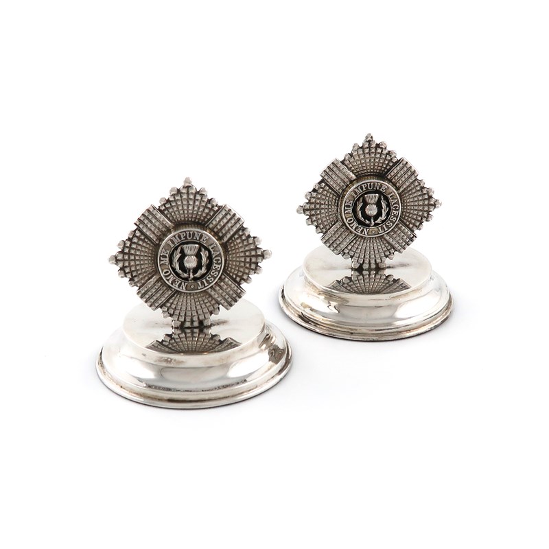 A pair of Regimental silver menu card holders, The Royal Scots,