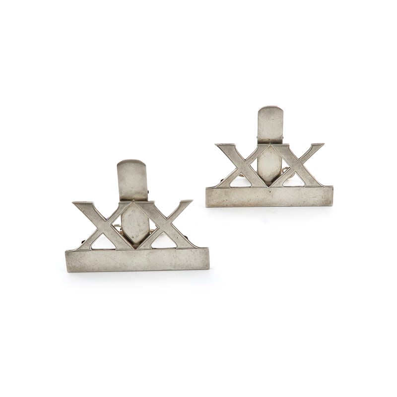 modelled as XX (20th), wirework easel backs, length 7.2cm, approx. weight 2.6oz. (2)