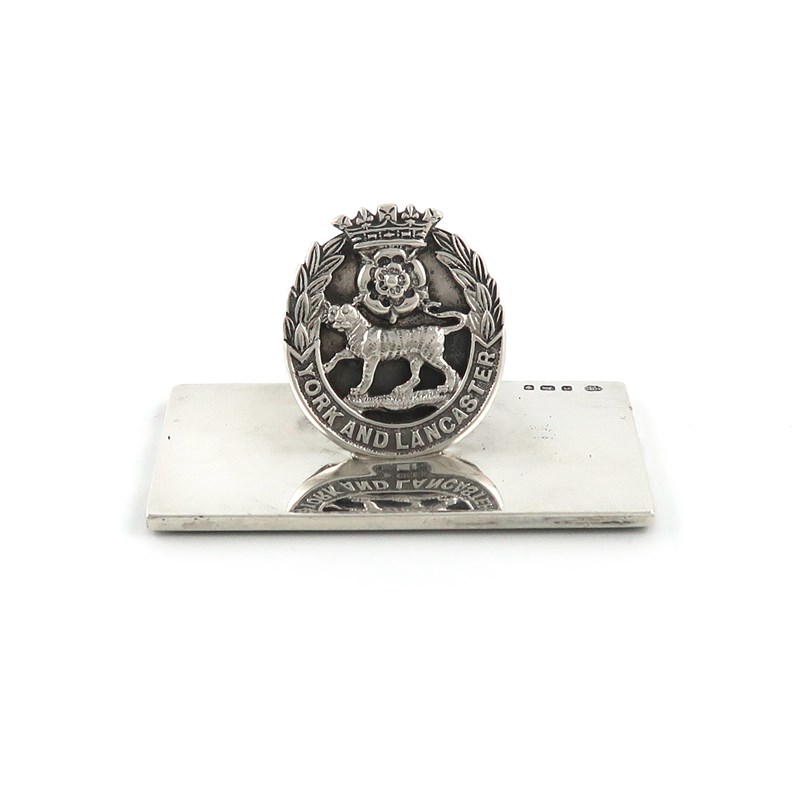A Regimental silver menu card holder, The York and Lancaster Regiment,