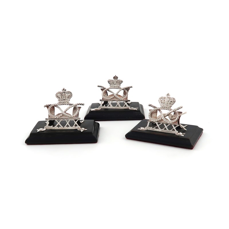 A matched set of three late-Victorian Regimental silver menu card holders