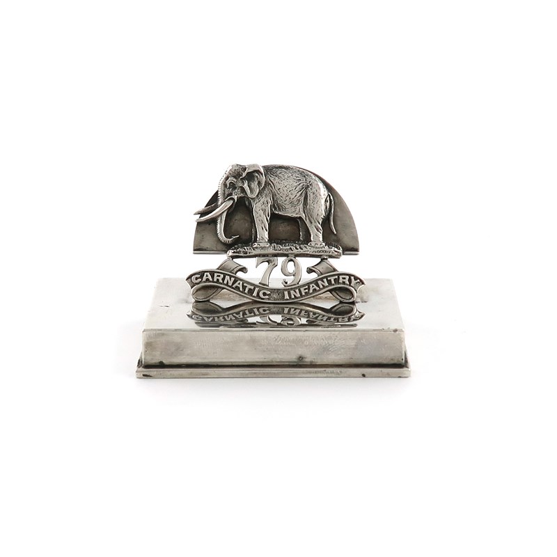 An Edwardian Regimental silver menu card holder, 79th Carnatic Infantry,