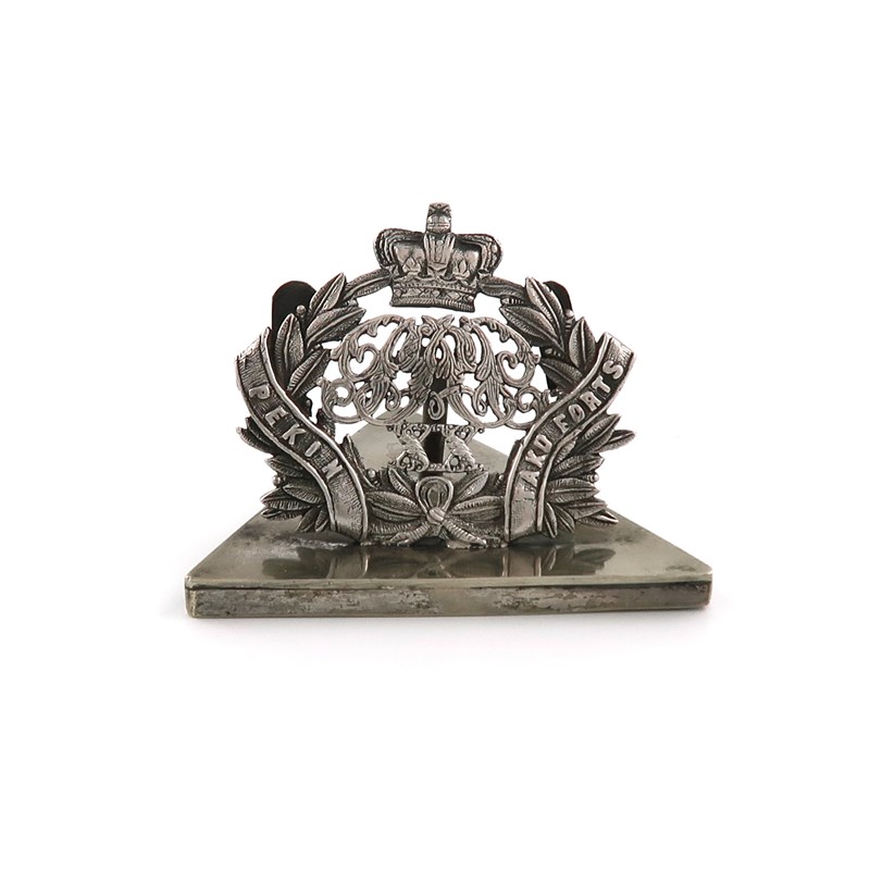 A Regimental metalware and electroplated menu card holder, The 20th (Punjab) Regiment of Bengal Native Infantry,