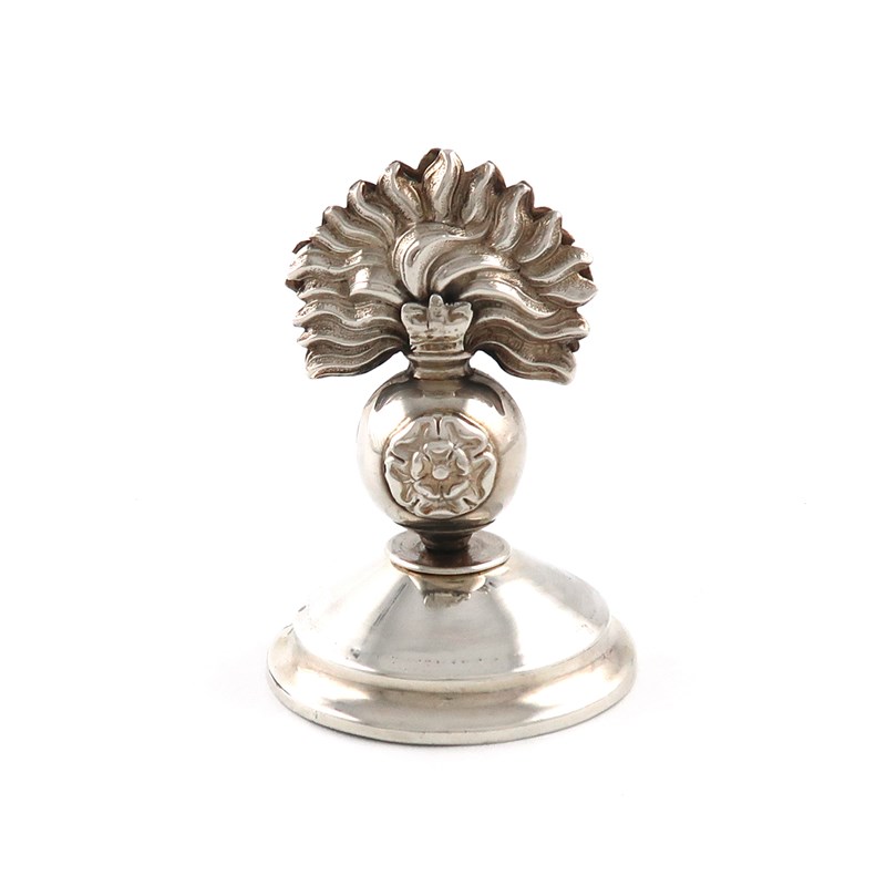 modelled as the regimental badge, on a raised circular foot, height 7.8cm, approx. weight 2.2oz.