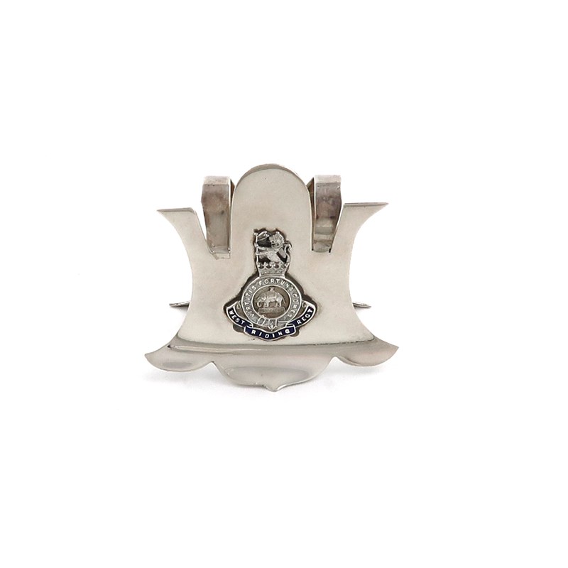 A late-Victorian Regimental silver and enamel menu card holder, The Duke of Wellington's (West Riding Regiment),