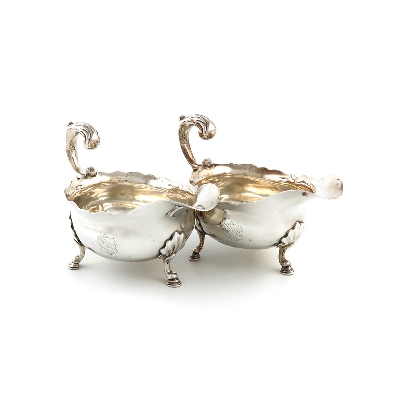 A pair of George II silver sauce boats