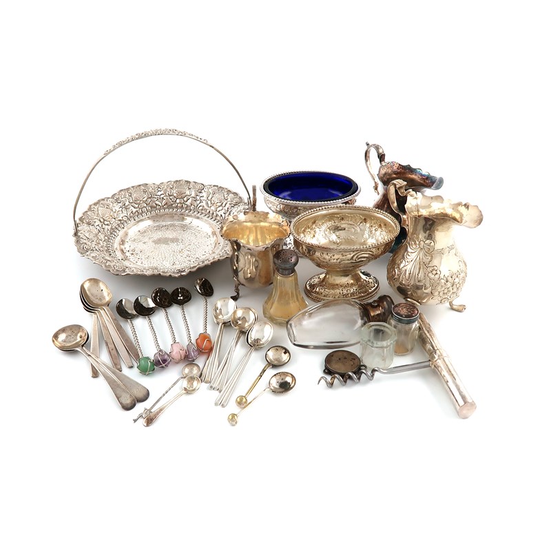 A mixed lot of silver items,