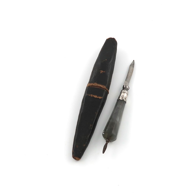 An 18th century silver-mounted agate handled quill cutter