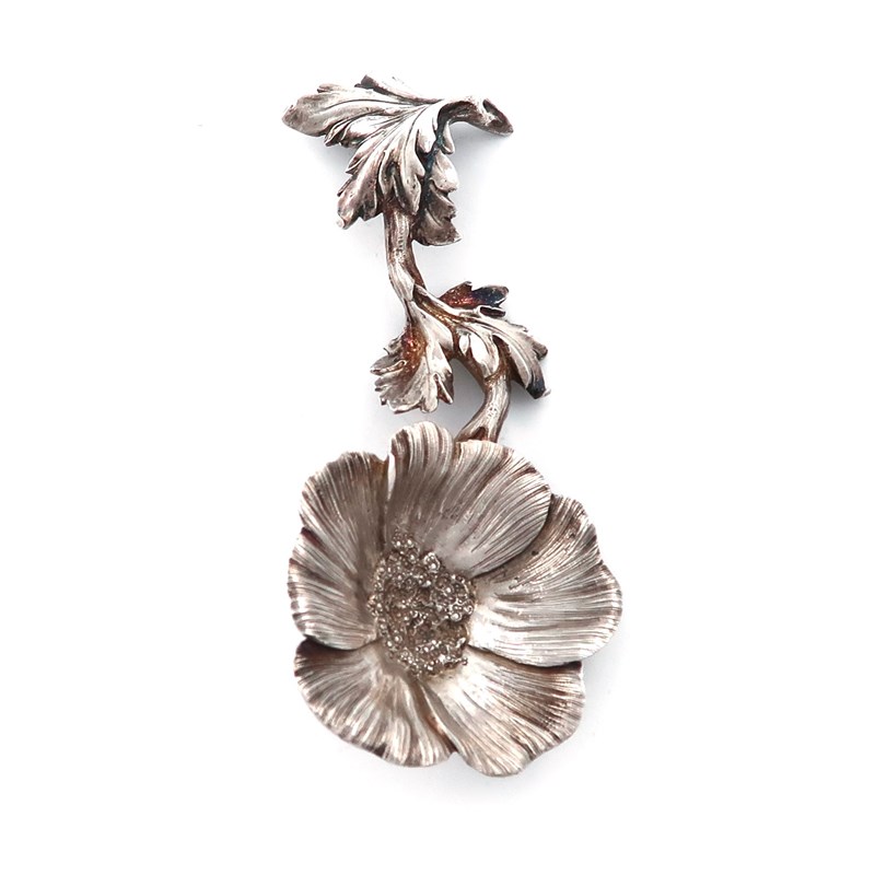 flower head bowl, the handle modelled as the stem with leaves, length 9.8cm, approx. weight 1.3oz.