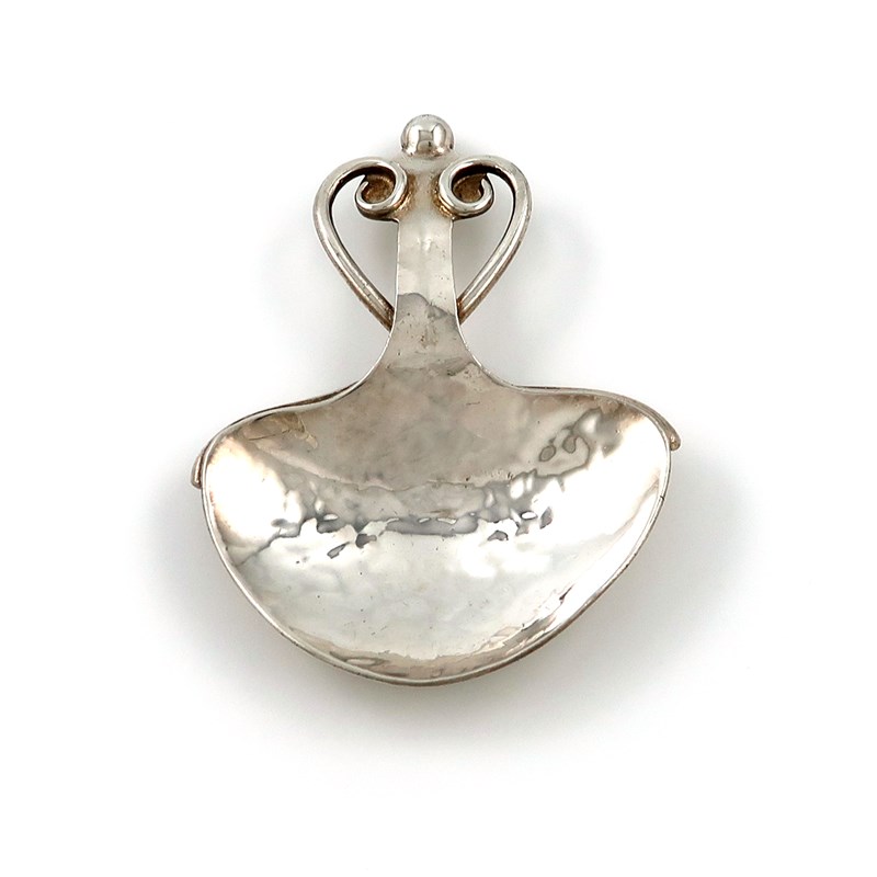 By A. E. Jones, an Arts and Crafts silver caddy spoon,