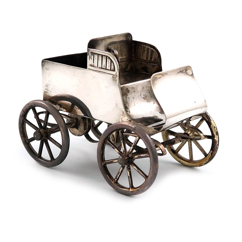 modelled as an early vintage car with a compartment for vestas and a striker, later lacquered, length 7.5cm.
