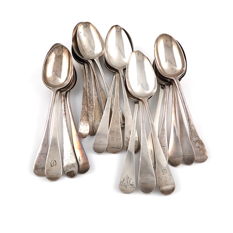 A collection of twenty George III and later silver Old English pattern tablespoons