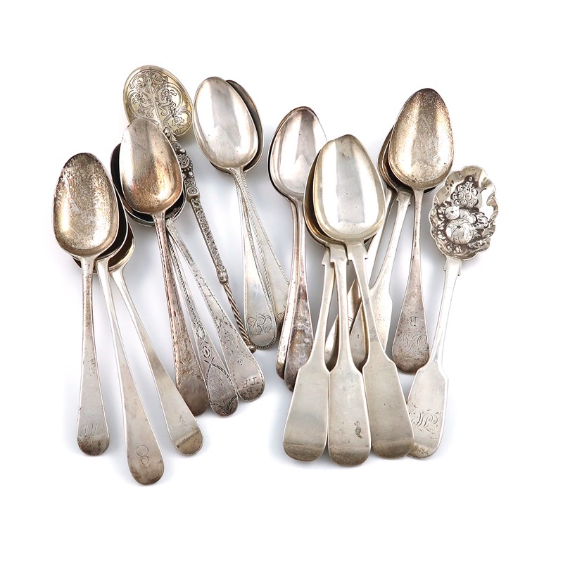 A collection of eighteen George III and later silver tablespoons