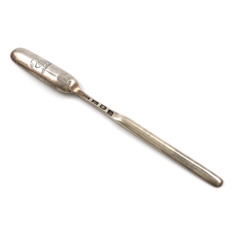 conventional form, the reverse of the bowl engraved with a crest, length 21.9cm, approx. weight 1.7oz.