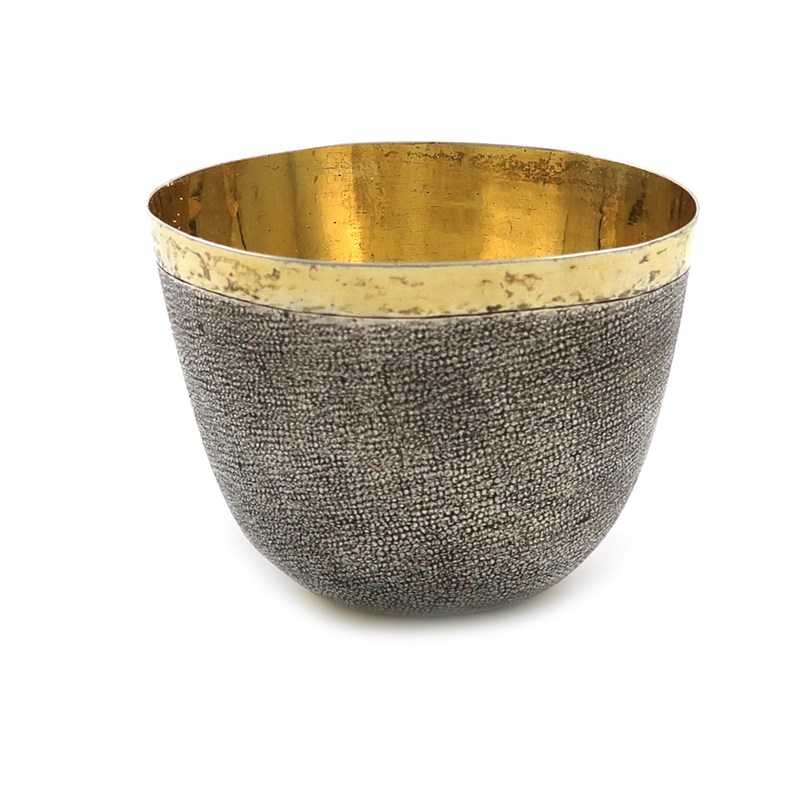 tapering circular form, with a silver-gilt rim and textured decoration, height 5cm, approx. weight 1.2oz.