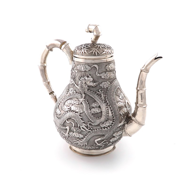 λA Chinese export silver coffee pot