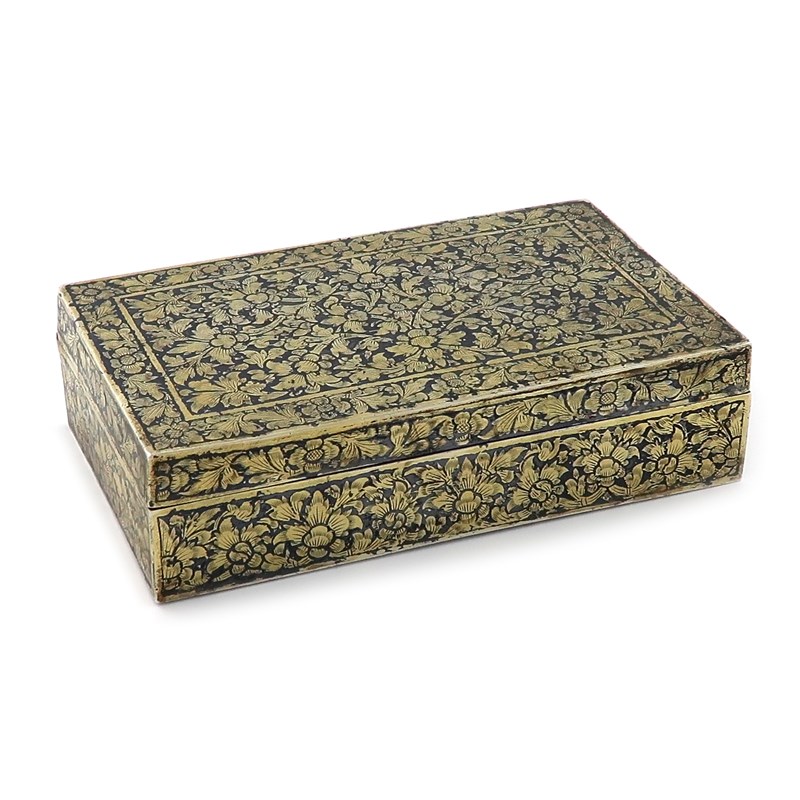 A 19th century Thai parcel-gilt silver and niello-work box,