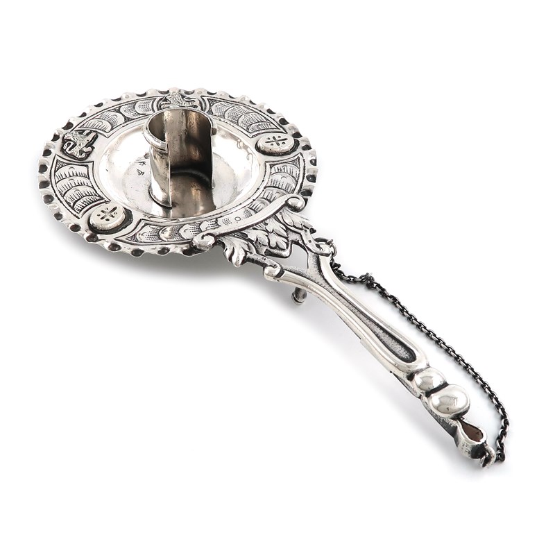 A silver chamber stick,