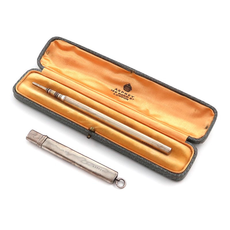 plain cylindrical form, in an Asprey case, length 12.5cm, plus an Edwardian silver carpenter's pencil case, by Charles and George Asprey, London 1903. (2)