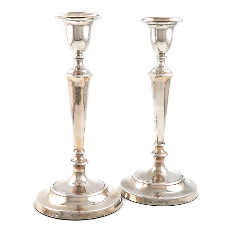 A pair of modern silver candlesticks