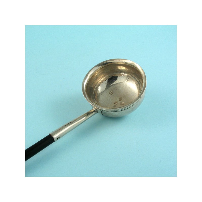A George I punch ladle , with a plain circular bowl and a later whalebone handle by George Greenhill Jones, London 1724, 14.75in (37.5cm) long.